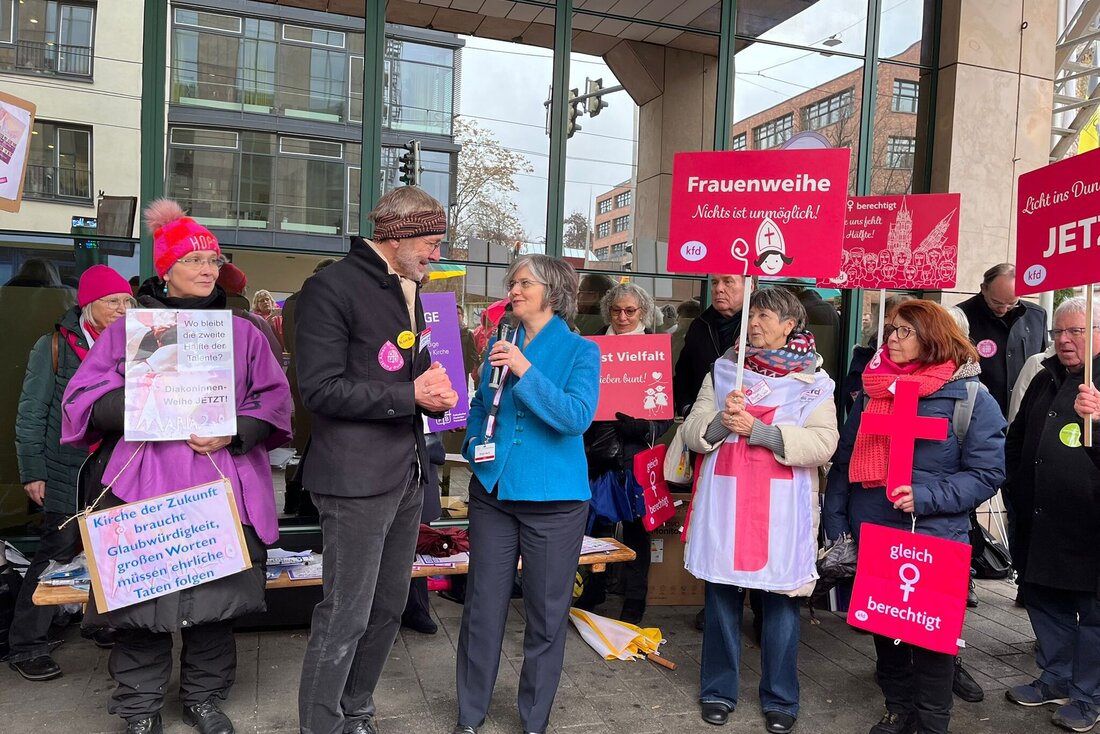 Ein besonderer Schritt hin zu einer Erneuerung der Kirche sind für die kfd die guten beschlossenen Grund- und Handlungstexte. Diese müssen, auch mit Hilfe von Lai*innen weiter in alle Bistümer ihren Eingang finden. Eine Umsetzung der Inhalte ist für die kfd unabdingbar.
