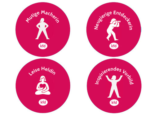 Karte mit 4 Buttons, passend zum Mut-Typ-Selbsttest